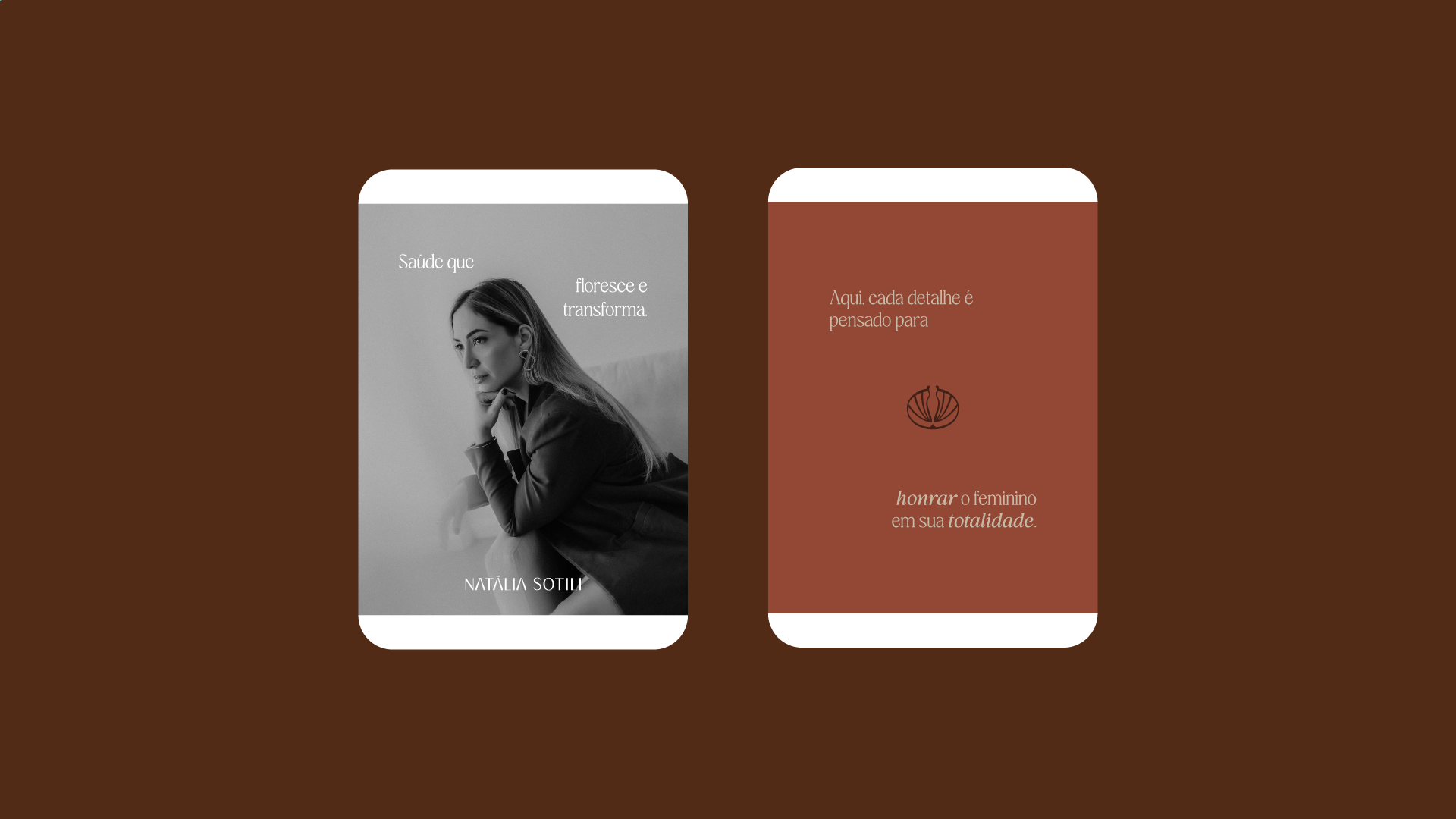 Inspirado na obra O Nascimento de Vênus, o símbolo representa o renascimento, a feminilidade e a força da mulher em sua essência. A silhueta no centro, remete ao corpo feminino em forma sutil de concha, evocando a deusa que nasce das águas — símbolo do amor, da fertilidade e da beleza. Os traços do símbolo remetem a pétalas, transmitindo acolhimento, proteção e fluidez, conceitos que refletem a forma como a Dra. Natália enxerga o cuidado: completo, gentil e transformador. Dra. Natália convida mulheres para reconectar-se com a própria natureza, com o prazer de viver em equilíbrio e com saúde integral.